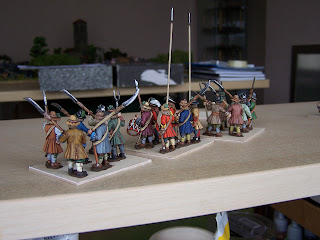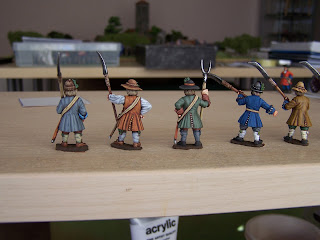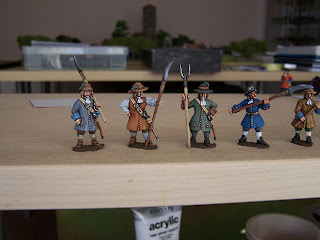 The 'look' I wanted here was a slightly 'scruffy', earthy look to the figs. I wanted to paint them neatly but also have the feel of the period. Colours, for the most part, not too bright for this mainly civilian army. I think this is where the brown undercoat paid off (like with my ECW stuff.) It gives a less pristine finish and personally I think it works here but each to their own.