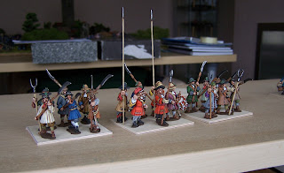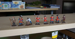 I've been trying to get the correct 'look' of the figures, that I'm happy with, for the late 17th century. This, obviously, is just my interpretation but it had to be right for me. Once I'm happy with the look of the finished samples I can begin painting units. (I did this with the Otterburn figs previously posted but fortunately I had Dave Imrie's figs to go on and the look he achieved for his figs was the one I also wanted.)