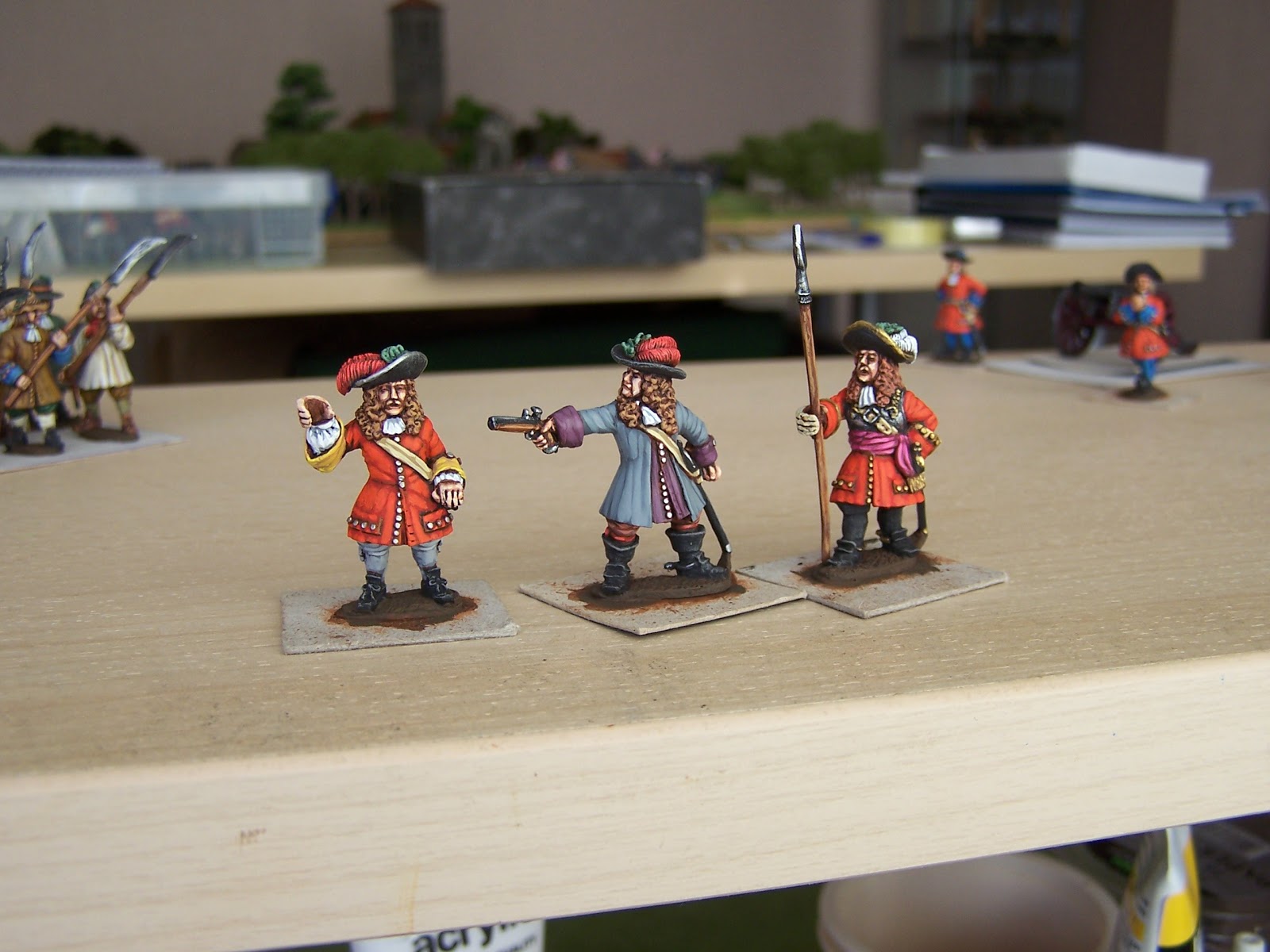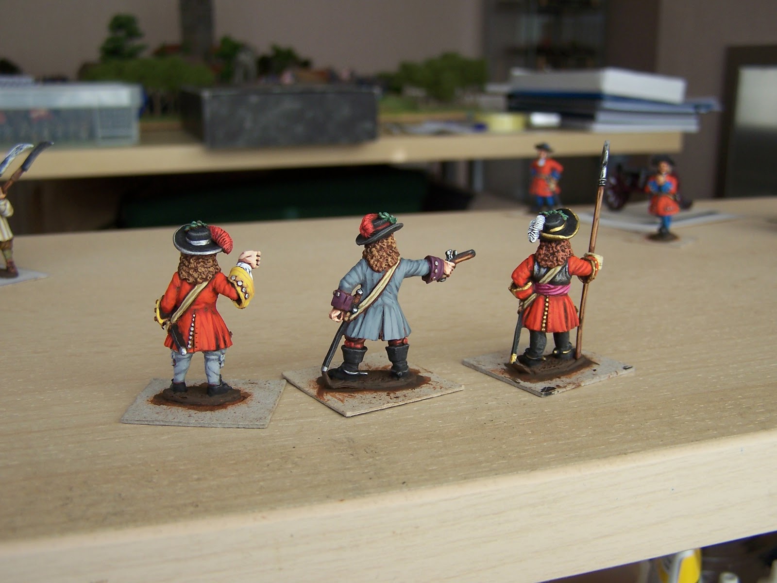 Pics of dragoons so far (another 4 just finished but not photoed yet!) My impression is they fought (mainly) dismounted at Sedgemoor but not as 'skirmishers' as we usually think of them. More of as a unit (but looser order) protecting the flanks of the Royal Regiments. Not sure how to base them - either individually or on bases, of say 3 or 4, but spread out a bit!!