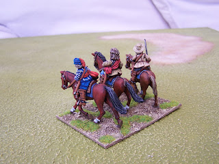 The figs on a sample base. Still haven't decided on whether to do 6 figs per base (eg. for 'Lily Banners' rules) or 4 per base.